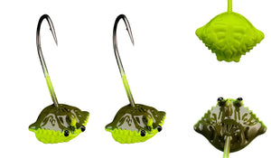 Built with a 2X Heavy Duty Mustad hook with no collar, the weight of the jig head is imprinted into the top of the head for your convenience.