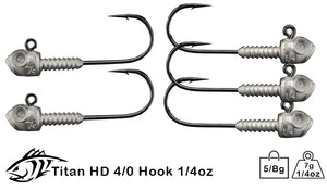 Heavy-Duty, super-strong Mustad UltraPoint hooks in the 4/0 and 6/0 sizes.