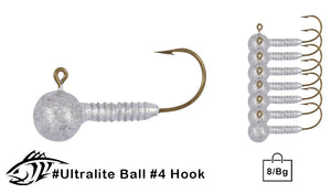 UltraLite Ball was created to fish small, narrow bodied worms and plastic lures like the 3" Hellgie and 2.75" Swimfish. The #4 hook and a narrow set of LunkerGrip cones allow easy insertion into the thinnest, most fragile baits without tearing or distorting the lure.