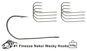 Created to enhance the performance of finesse tactics, like the neko rig, wacky rig, and drop shot. The Lunker City Finesse Wacky/ Neko Hooks are chemically sharpened corrosion resistant black nickel hooks for maximum strength and ultra light weight. Designed with pro level performance on spinning gear, the long shank with fine wire is the perfect combination of strength and finesse to put more fish in the boat!